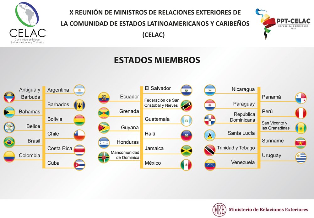 Conoce los 33 Estados miembros de la @CELAC #XReuniónRDCELACpic.twitter.com/kX0N8wqJKc