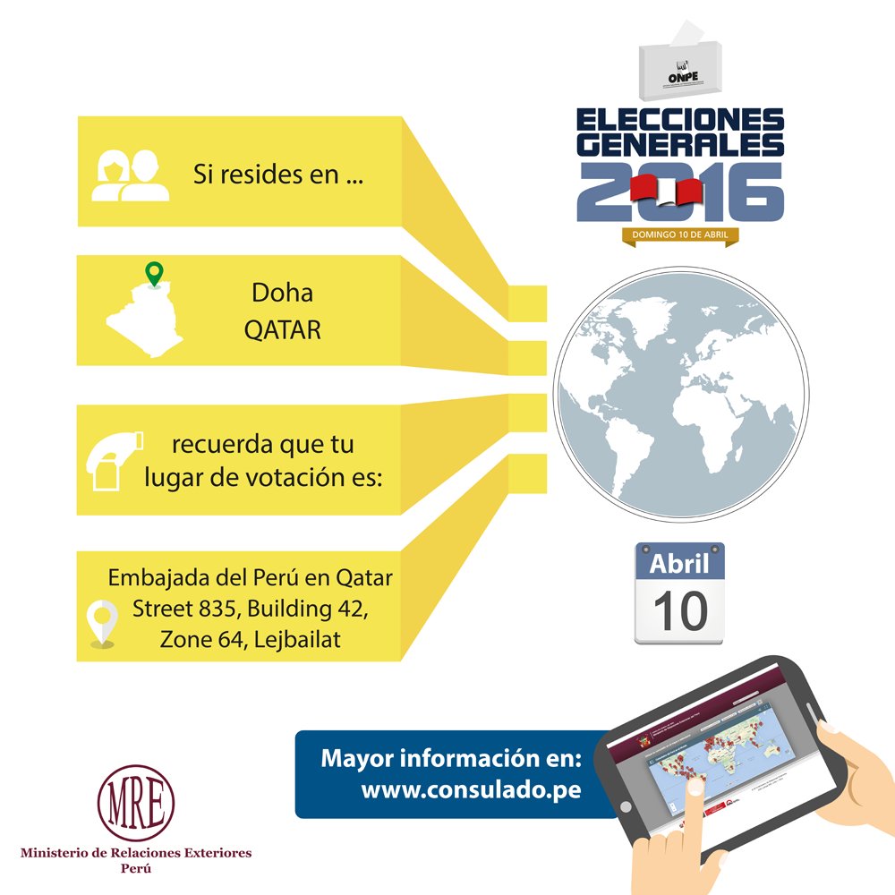 Conoce los locales de votación en #Líbano #Ghana #Qatar y #ArabiaSaudita #EleccionesPerú2016 🇱🇧 🇬🇭 🇶🇦 🇸🇦pic.twitter.com/VK6MlS6Oe8