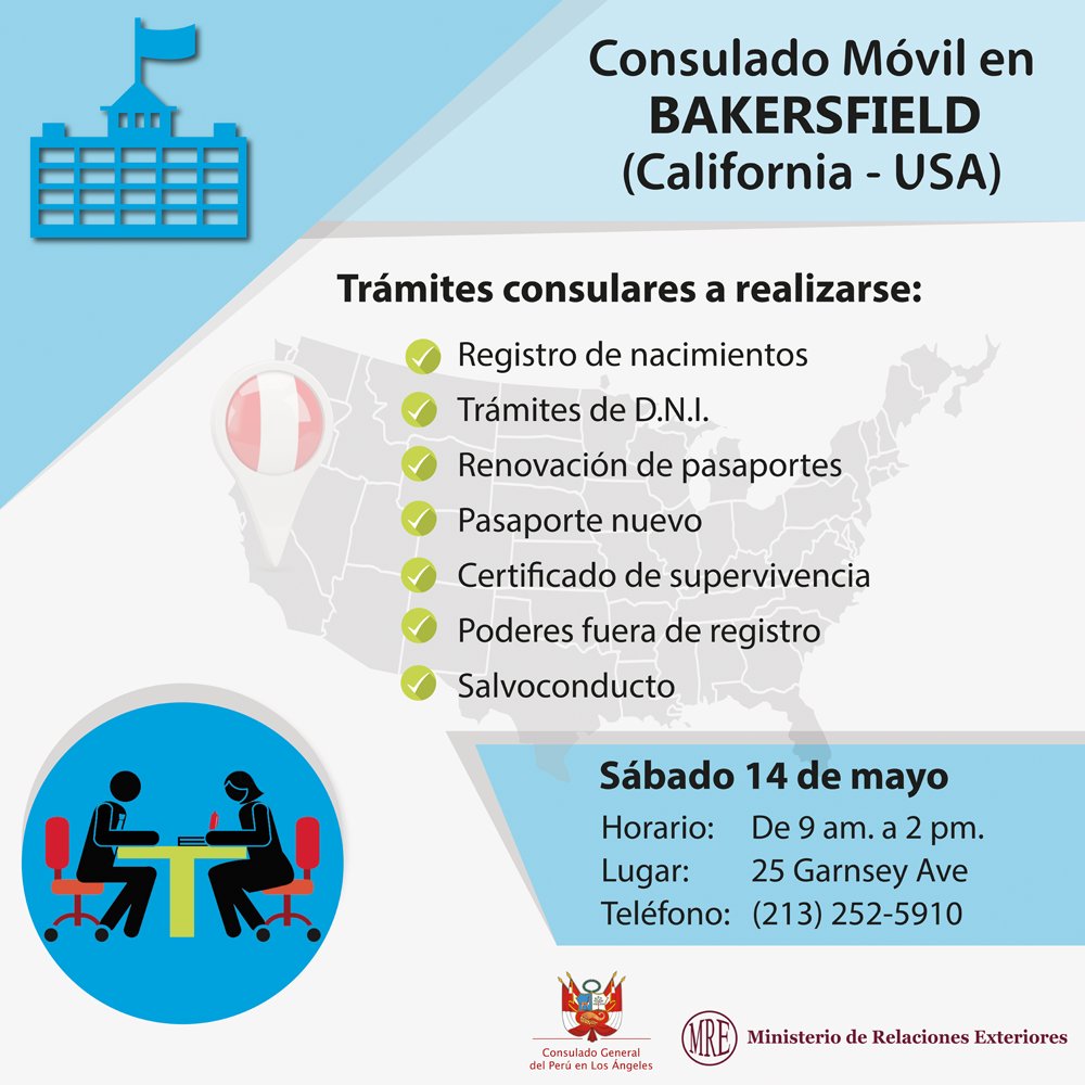 Si resides en #Bakersfield, nuestro consulado en #LosÁngeles realizará un consulado itinerante el sábado 14 de mayopic.twitter.com/WXoqXnE537