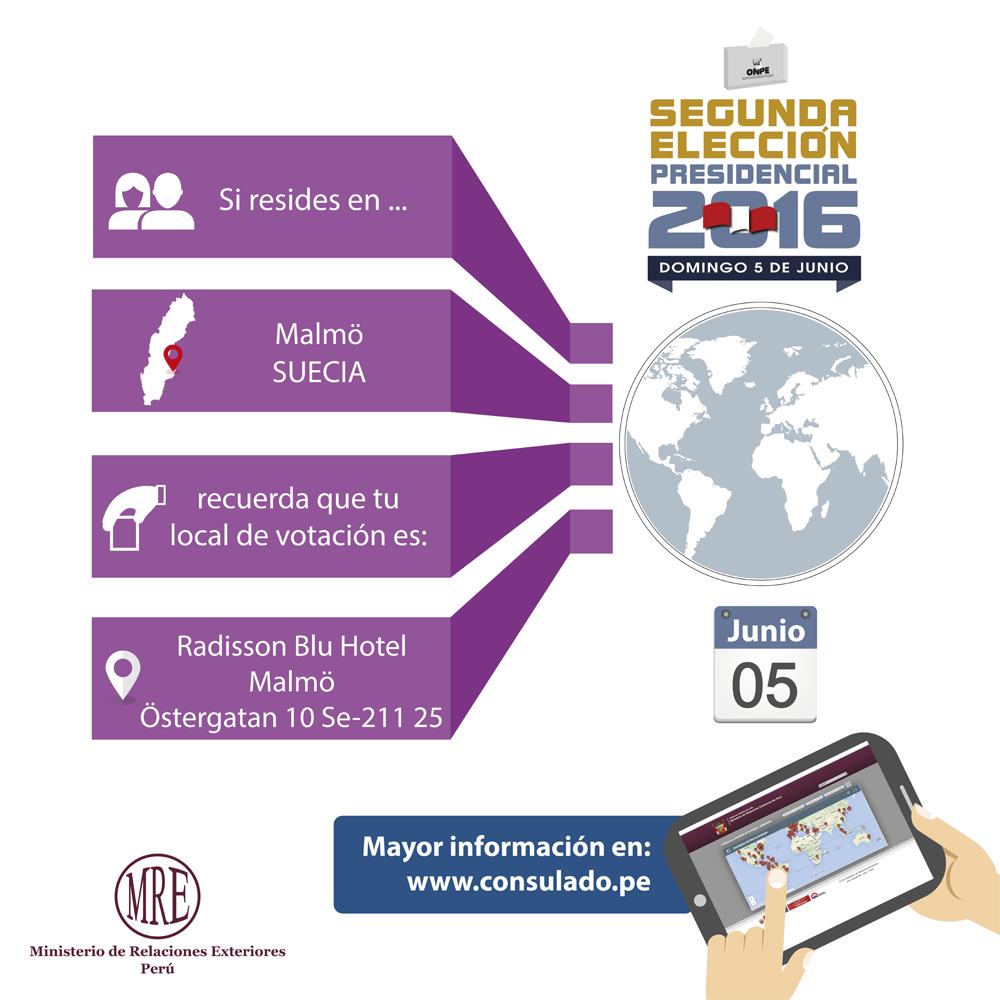 #EleccionesPerú2016: Compartimos los locales de votación en #Estocolmo y #Malmö en #Suecia #Sverigepic.twitter.com/Id0UECHzzz