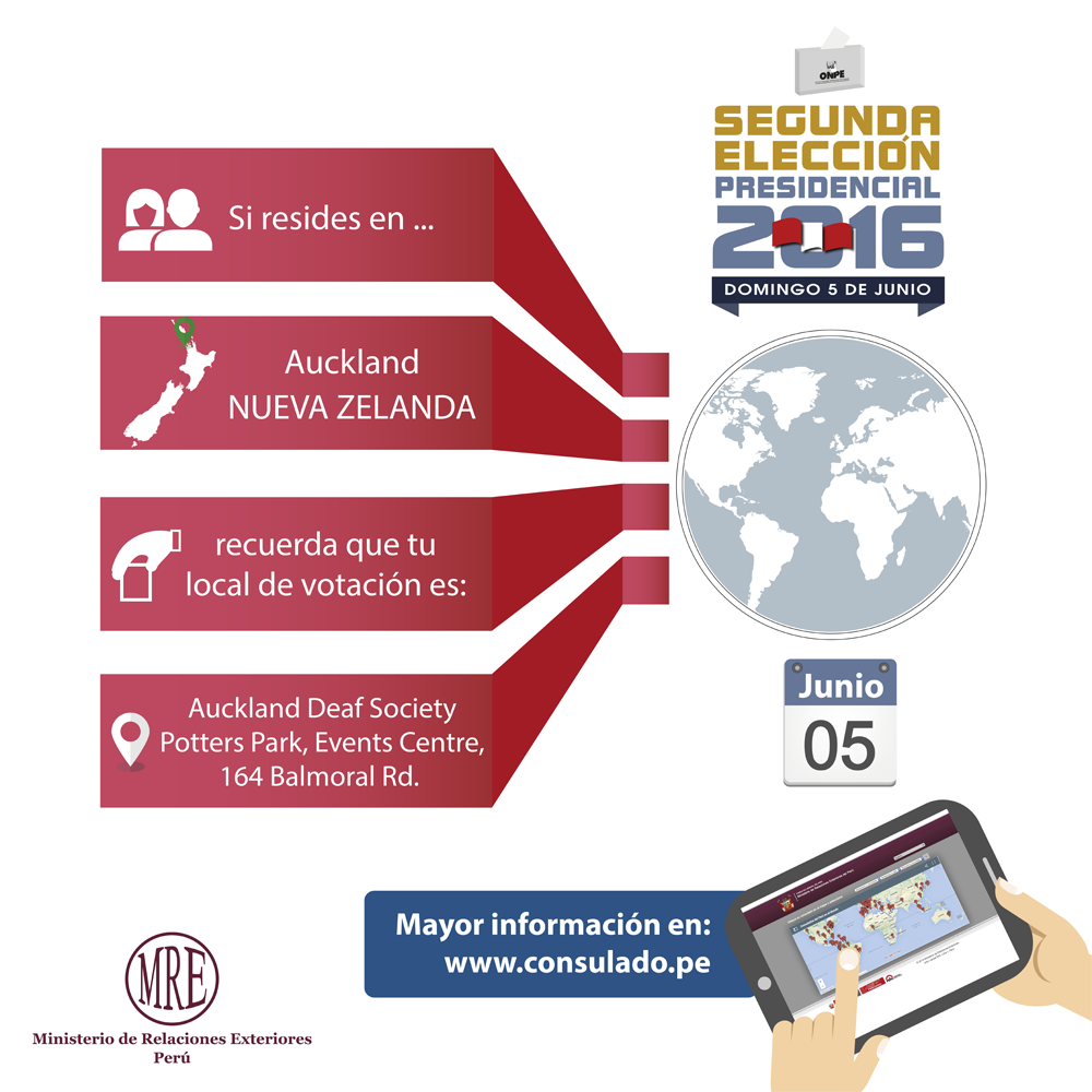 Conoce el local de votación para 2da. vuelta de #EleccionesPerú2016 en #NuevaZelandapic.twitter.com/fLNmHJ4QSQ