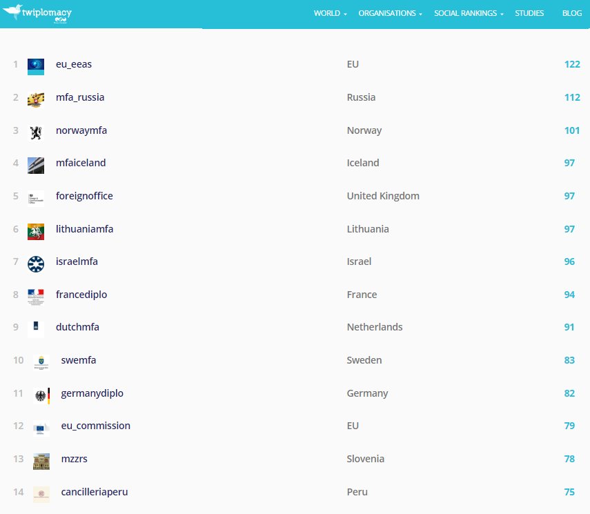 Cancillería ocupa el #1 en Latinoamérica y #14 mundial de los líderes mejor conectados en Twitter, según @Twiplomacypic.twitter.com/nIxZhFWr6z