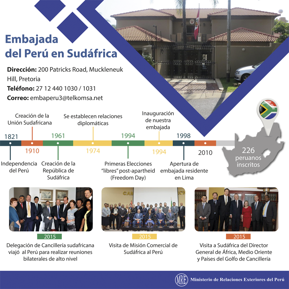#InfoCancillería: Conoce algunos datos de la relación bilateral entre el #Perú y #Sudáfricapic.twitter.com/MZ6odD9ieg