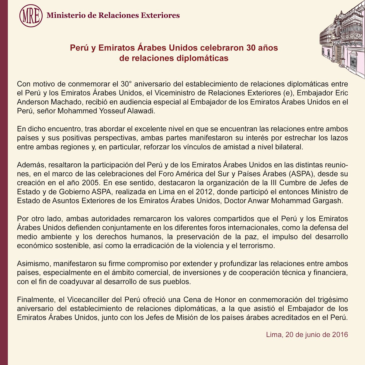 Perú y Emiratos Árabes Unidos celebraron 30 años de relaciones diplomáticas http://bit.ly/28LXutz #EAUpic.twitter.com/1s6IAPdPSo