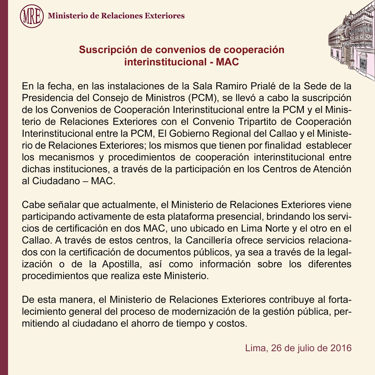 PCM y Cancillería firman #convenios de cooperación interinstitucional - MAC http://bit.ly/2aIdwTV pic.twitter.com/KyEVs9KPgR