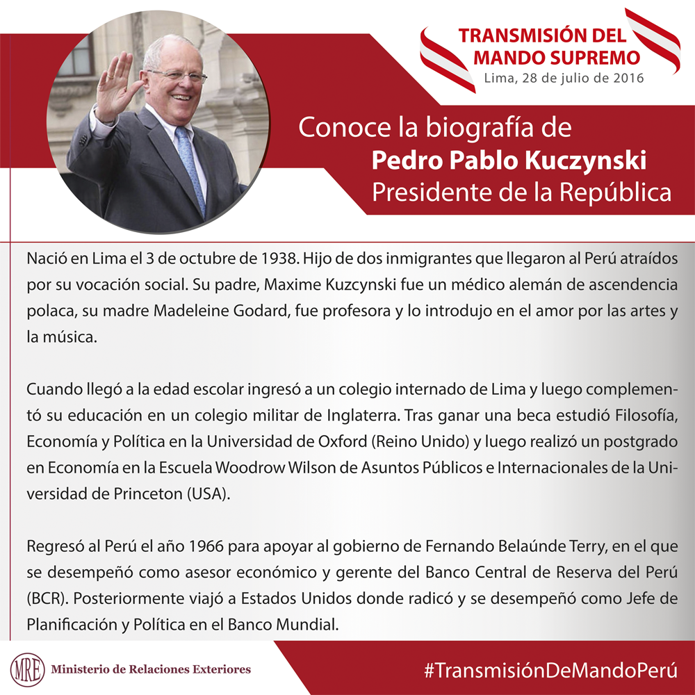 ¿Conoces la biografía del pdte. electo @ppkamigo? La compartimos aquí #TransmisiónDeMandoPerúpic.twitter.com/kf9tw0lcsA