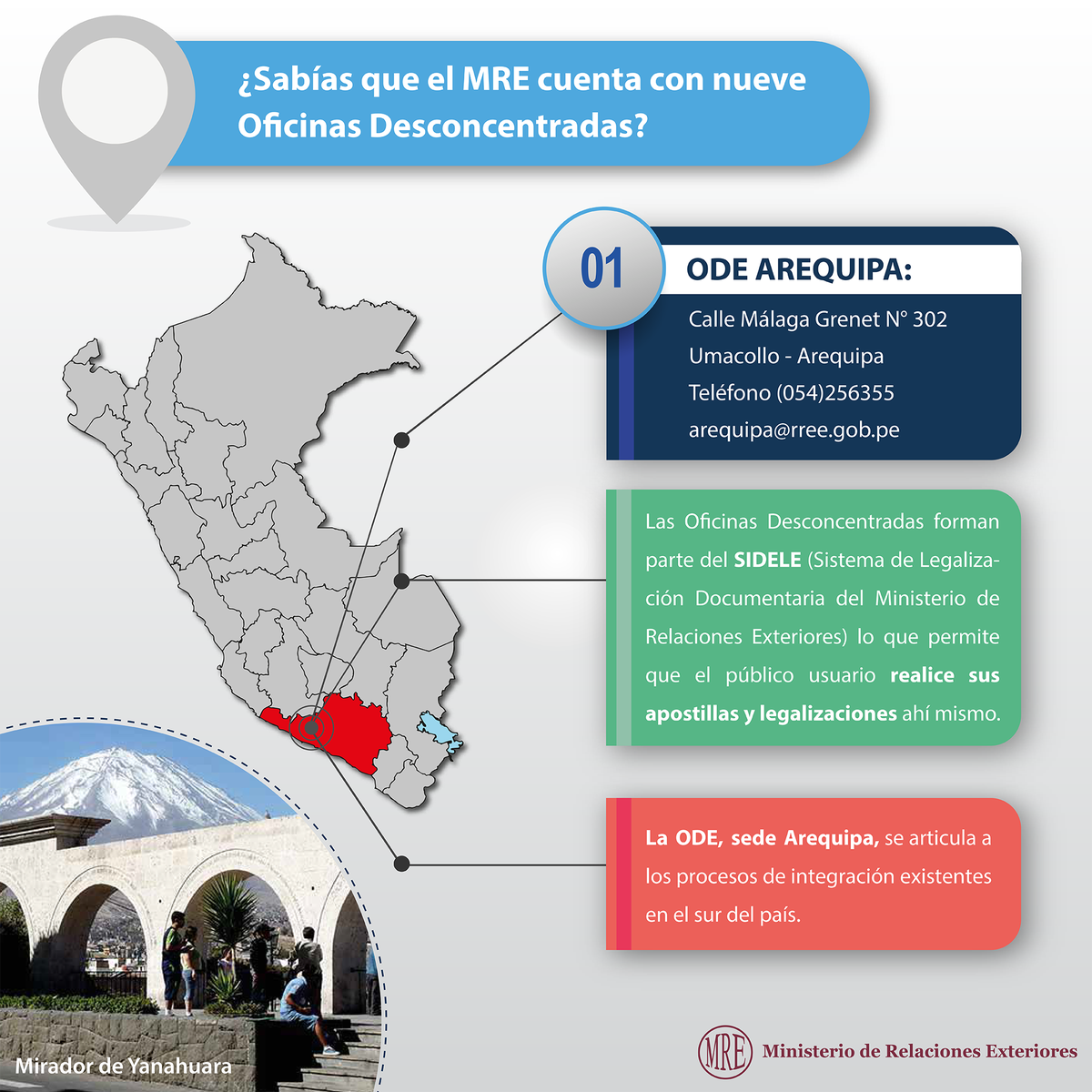 ¿Sabías que @CancilleriaPeru cuenta con Oficinas Desconcentradas en las que se puede apostillar/legalizar documentos? Conoce la ODE-Arequipapic.twitter.com/FykjgAJMMS