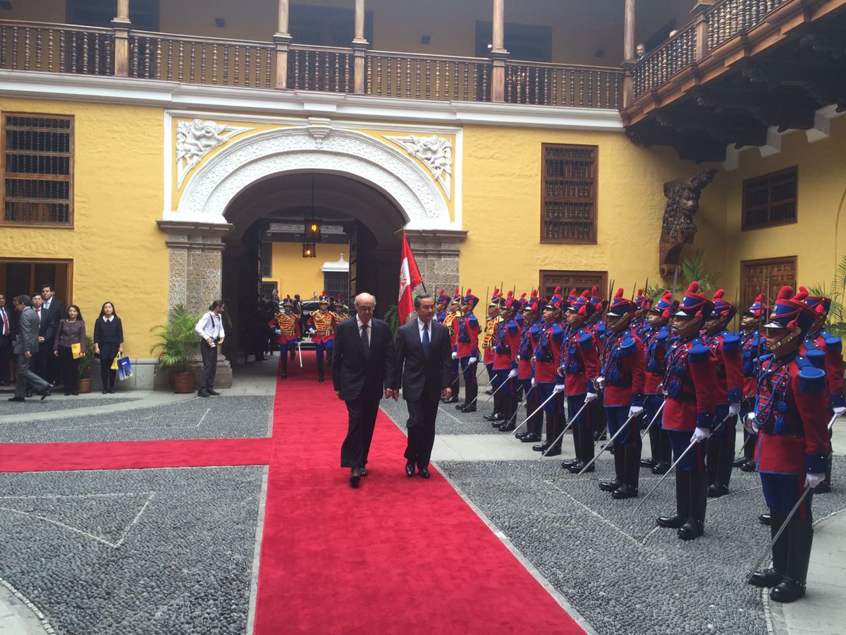 #Fotos 📷 : Canciller #RicardoLuna recibió en Palacio Torre Tagle a su homólogo de #China, #WangYi con quien sostendrá una reunión de trabajopic.twitter.com/wF7xSDy6kP