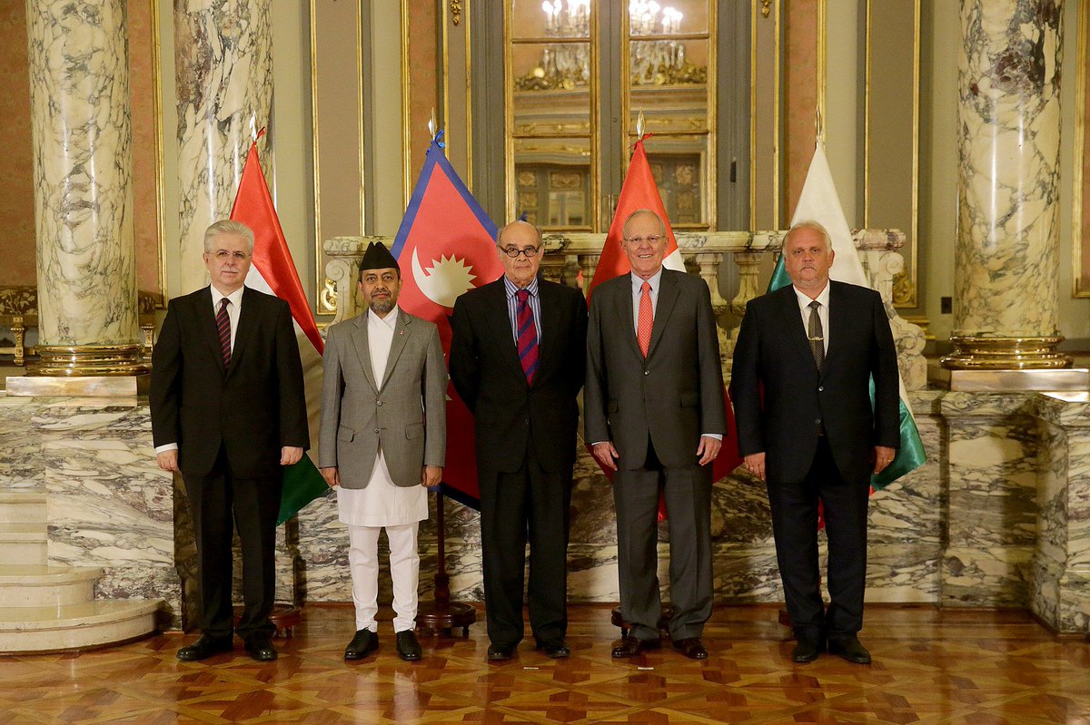 Canciller #RicardoLuna acompañó a @ppkamigo durante presentación de cartas credenciales de Embajadores de #Nepal, #Bulgaria y #Hungríapic.twitter.com/TlX6zJRIxl