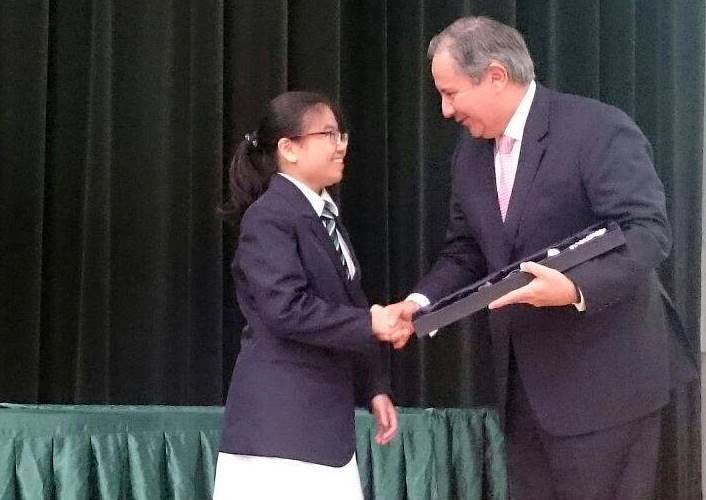 Entregan premio “Embajada de la República del #Perú” a destacada estudiante de colegio líder en #Singapur http://bit.ly/2enS0Z3 pic.twitter.com/ozLvRNzx6f