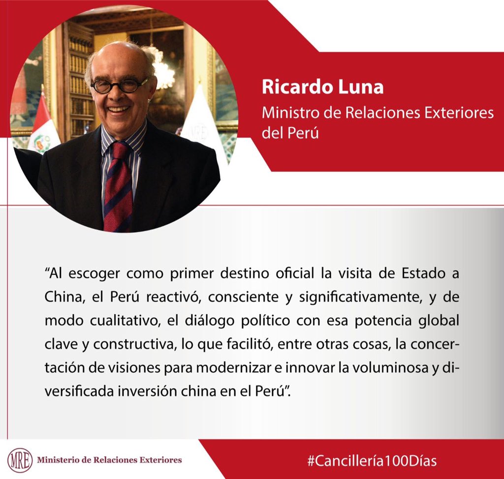 Canciller: Al escoger como 1º destino oficial a China, Perú reactivó significativamente el diálogo político con ese país #Cancillería100Díaspic.twitter.com/cuCvqhuynQ