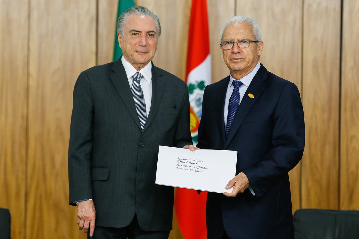 Embajador del #Perú presentó Cartas Credenciales ante Gobierno de #Brasil http://bit.ly/2f5JFHl  (foto: @Planalto)pic.twitter.com/fFoOJKFoyD