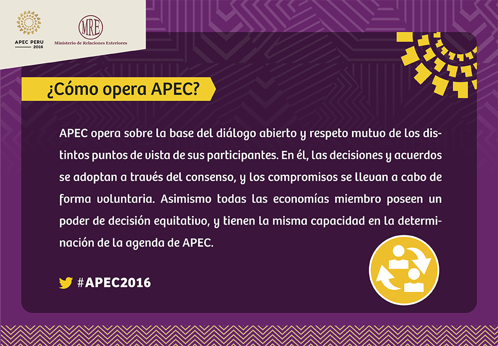 Revisa nuestra infografía y entérate cómo opera @APEC, foro que #Perú integra desde 1998. Interactúa con el hashtag #APEC2016 ¡Comparte!pic.twitter.com/2JQx90u4y7