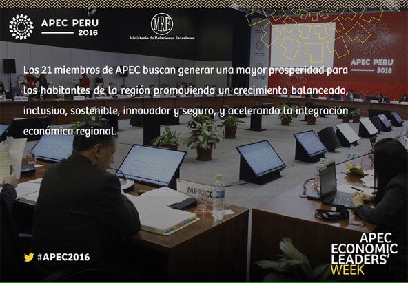 Economías @APEC buscan generar mayor prosperidad para su habitantes mediante la promoción del crecimiento inclusivo y sostenible. #APEC2016pic.twitter.com/WeCgH8JXCs