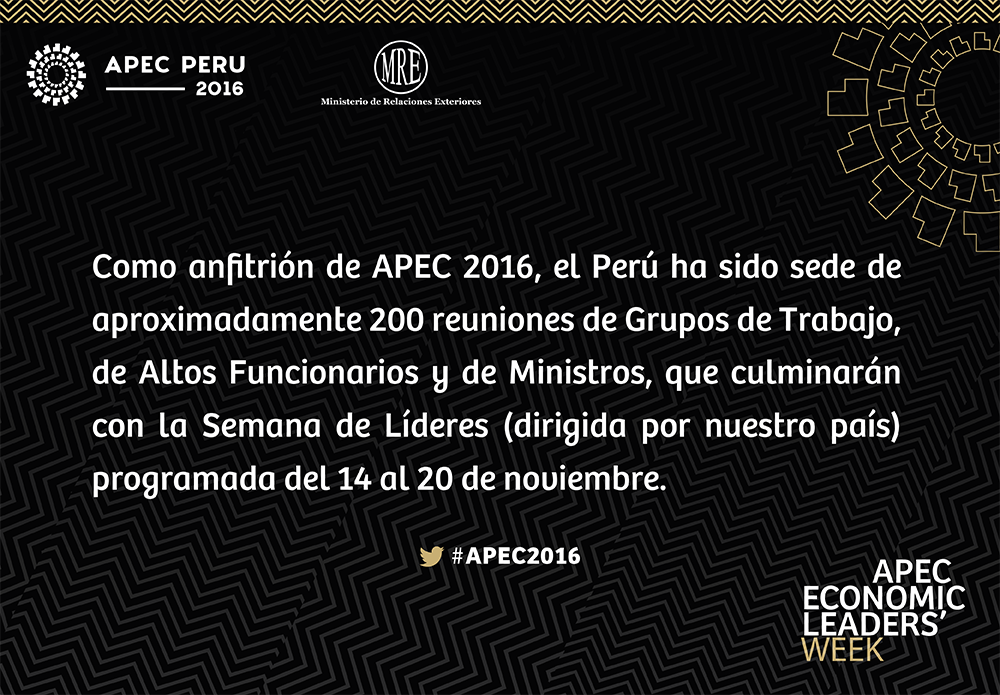 Como anfitrión de #APEC2016, #Perú fue sede de aproximadamente 200 reuniones de trabajo que culminarán con la Cumbre de Líderes @APECpic.twitter.com/wjw6AhLEEy
