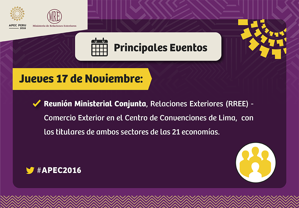 #Hoy: Inicia la Reunión Ministerial #APEC2016 presidida por el Canciller #RicardoLuna y el Titular de @MINCETUR, Eduardo Ferreyros.pic.twitter.com/5yWJyKYl8d