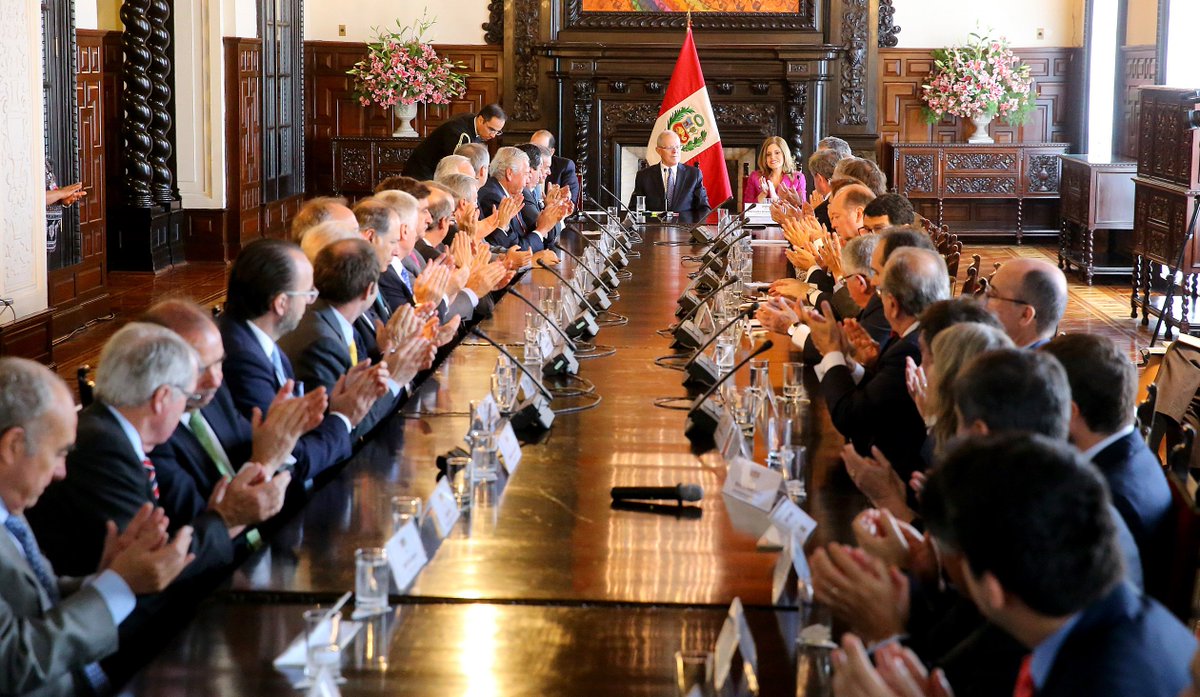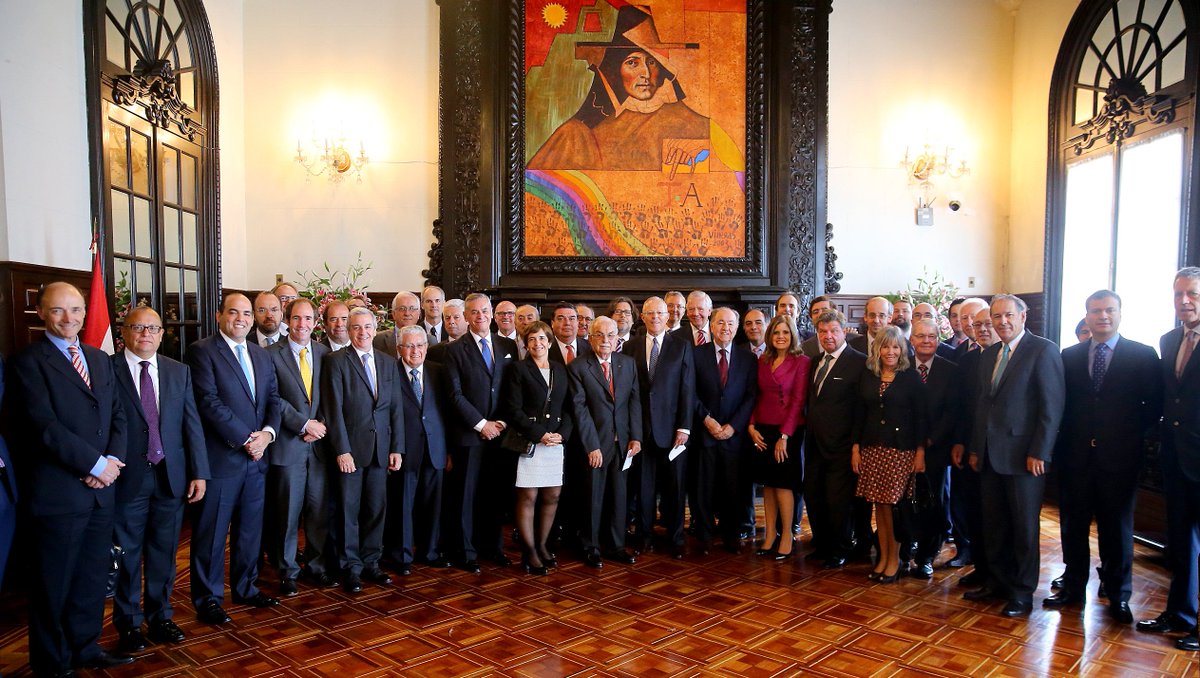 #Hoy: En el marco de #APEC2016, el Presidente @ppkamigo se reunió con el Consejo Empresarial Peruano – Chileno en #PalacioDeGobiernopic.twitter.com/lsE4eZtG7I