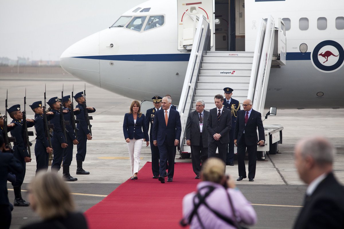 #Fotos 📷: Llega a #Lima el Líder de #Australia, @TurnbullMalcolm para participar de Cumbre #APEC2016pic.twitter.com/fQpUCS4unN