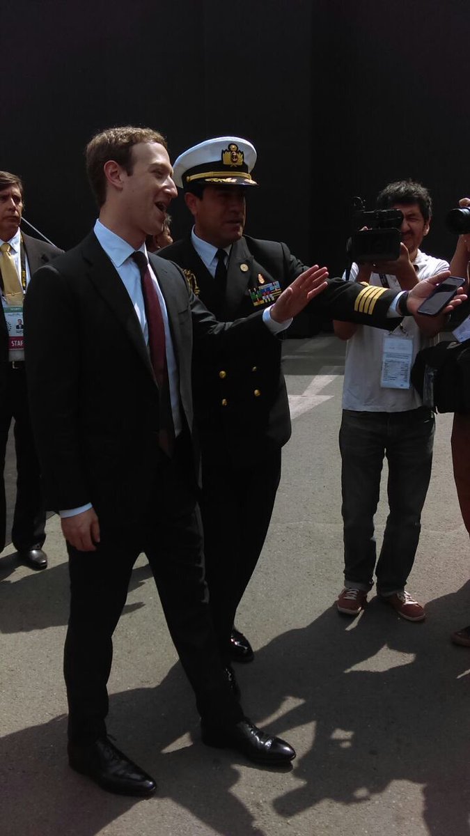 #LoÚltimo: #MarkZuckerberg visita módulo de @facebook en #APEC2016 para presentar a "Aquila" a Pdte. @ppkamigopic.twitter.com/cA24pPrNjk