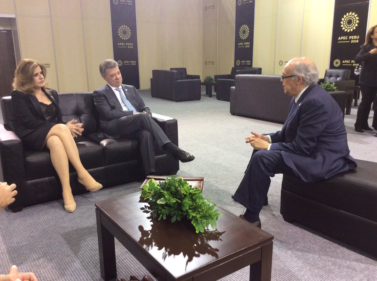 #Ahora: Conversación entre el Presidente de #Colombia @JuanManSantos y el Canciller #RicardoLuna en el marco de #APEC2016pic.twitter.com/eNAyv6dOFc
