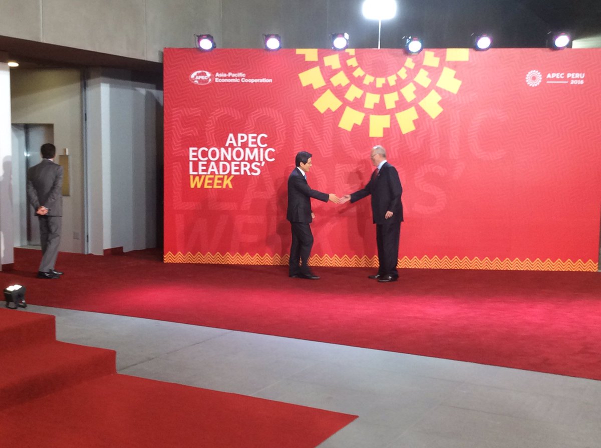 Saludo entre el Pdte. @ppkamigo y Líderes de economías @APEC en el marco del segundo día de reuniones de Cumbre #APEC2016pic.twitter.com/O101i75RsP