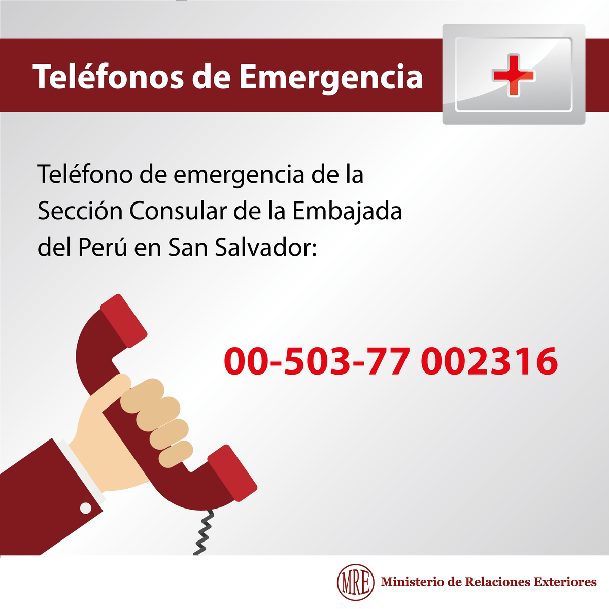Ponemos a disposición el número de #emergencia de la Sección Consular de la Embajada del Perú en San Salvador. #ElSalvadorpic.twitter.com/clBbEwvGEF