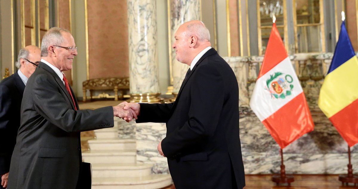 Presidente @ppkamigo recibió, en Palacio de Gobierno, las Cartas Credenciales del nuevo Embajador de #Rumania en el Perú, Gabriel Gafitapic.twitter.com/b1XDFkfu3T