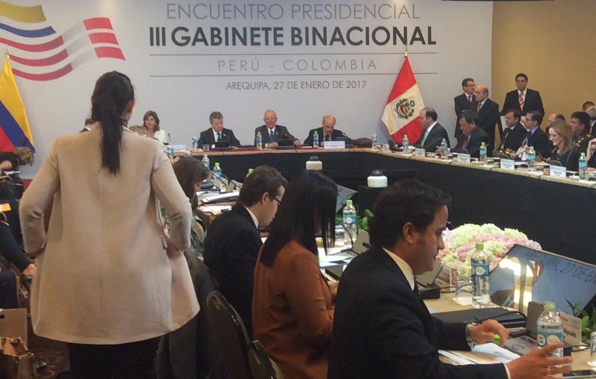 Presidente @ppkamigo: Me da mucho gusto estar en este gabinete con #Colombia. Quiero darle una calurosa bienvenida al Pdte. @JuanManSantospic.twitter.com/mkMww2RE8w