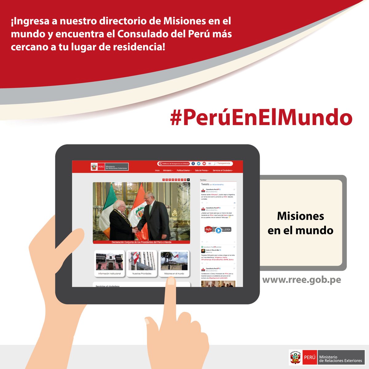 Ministerio de Relaciones Exteriores. Formulamos, ejecutamos y evaluamos la política exterior del país. Facebook: http://facebook.com/CancilleriaPeru