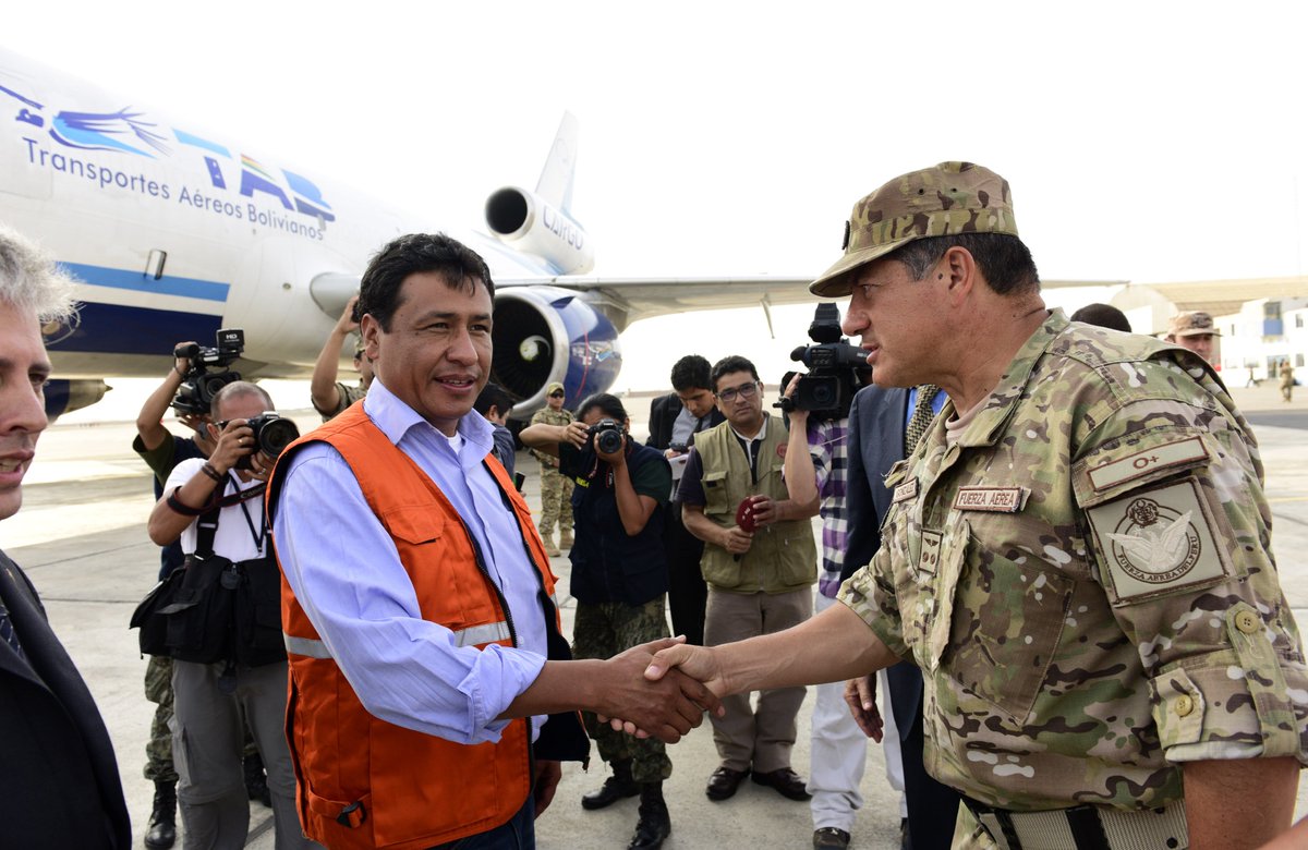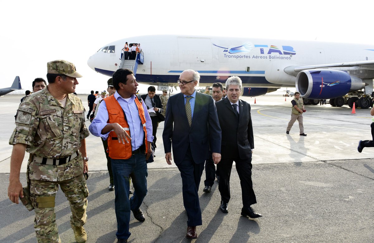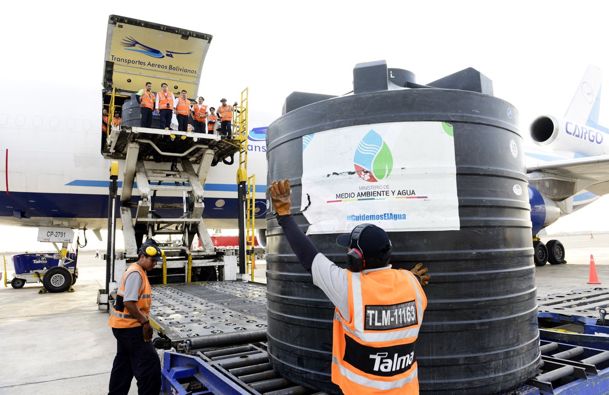 #Fotos 📸 Llegada de avión boliviano con donación de agua y reservorios para dicho elemento que serán de ayuda a damnificados. #UnaSolaFuerzapic.twitter.com/l11gNlwegS