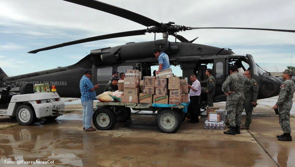 .@FuerzaAereaCol (Colombia) ha contribuido también al traslado de ayuda humanitaria a zonas de difícil acceso. #UnaSolaFuerza 🚁pic.twitter.com/2qhE0CEShs