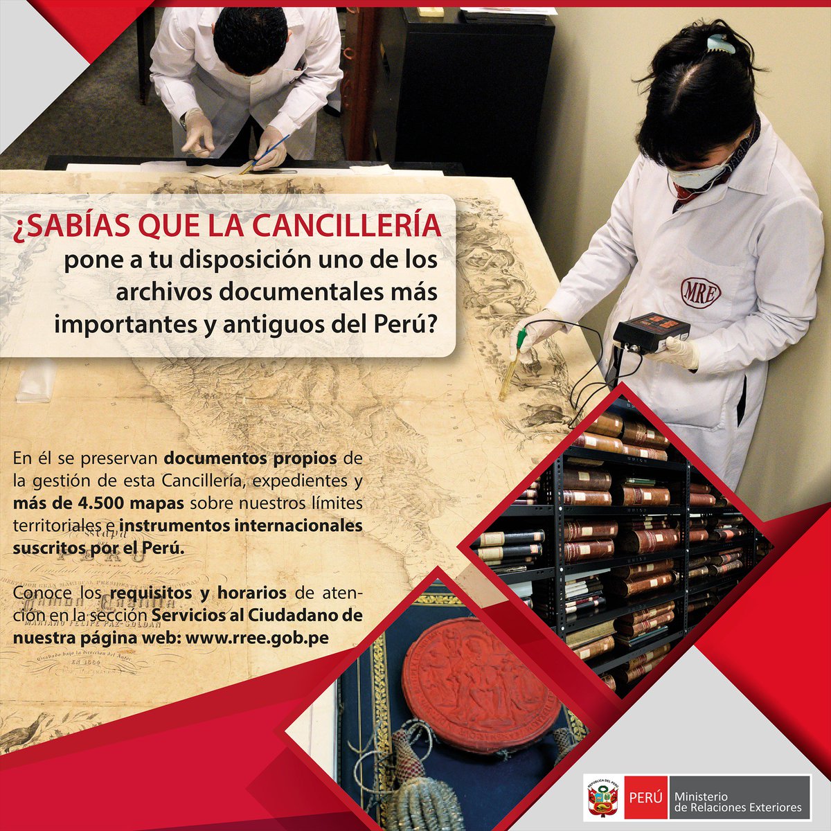 En @CancilleriaPeru ponemos a tu disposición uno de los archivos documentales más importantes del #Perú. Búscanos ➡️ http://www.rree.gob.pe pic.twitter.com/kqOxh3AZOV