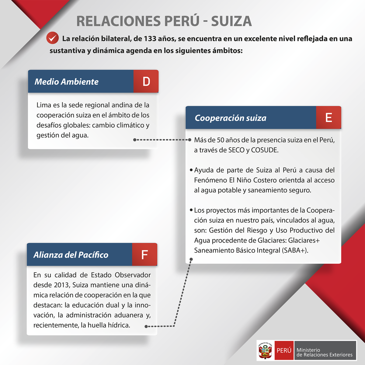 ✅ A propósito de la #VisitaOficial que realizará la Presidenta de #Suiza al #Perú conoce las principales relaciones bilaterales entre 🇵🇪🇨🇭pic.twitter.com/HkwtWOdqoL