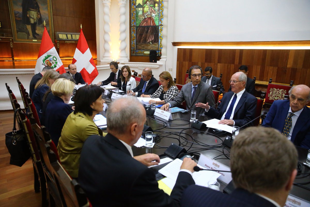 #Hoy | Mandatario @ppkamigo sostuvo una reunión bilateral junto a la Presidenta de Suiza, Doris Leuthard y sus respectivas delegacionespic.twitter.com/j89vg1WSKN