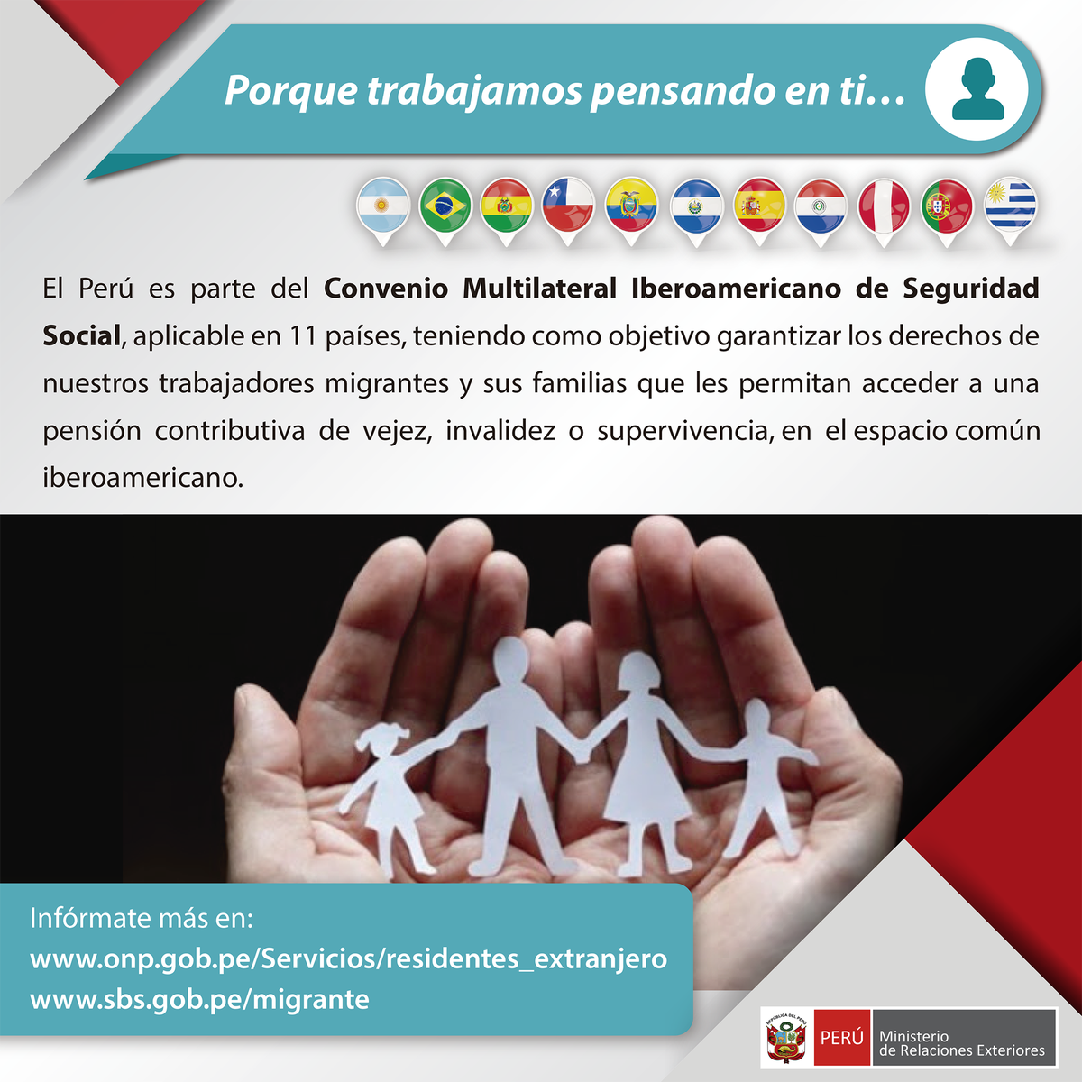 ¿Sabías que el #Perú es parte del Convenio Multilateral Iberoamericano de #SeguridadSocial aplicable en 11 países? Echa un vistazo ⬇️pic.twitter.com/pk7G0nZqZZ