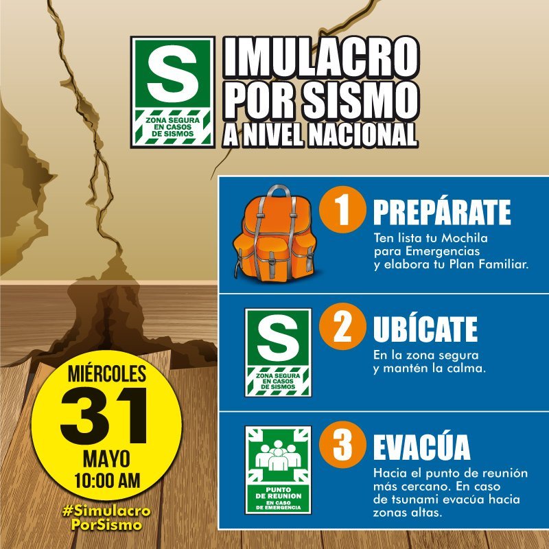 🚨¡Prepárate, ubícate y evacúa!🚨 Ten en cuenta estas recomendaciones durante el simulacro de #hoy (10:00 am) organizado por @indeciperupic.twitter.com/1TilGxPUUP