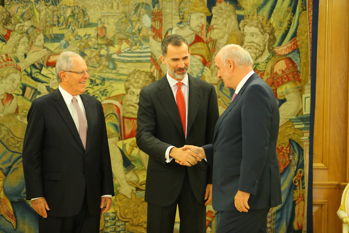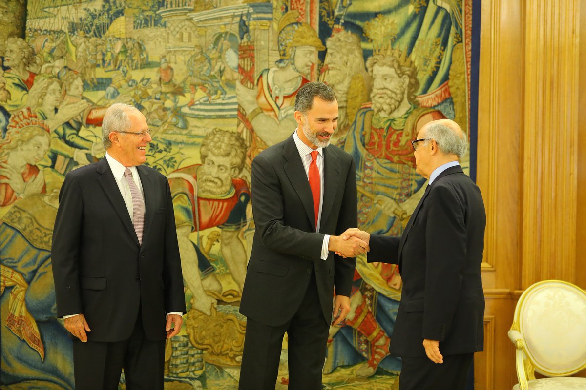 En #VisitaOficialEspaña, Canciller #RicardoLuna y Embajador @PeruEnEspana acompañaron a Presidente @ppkamigo en encuentro con Rey Felipe VIpic.twitter.com/aBeXqHpeHp