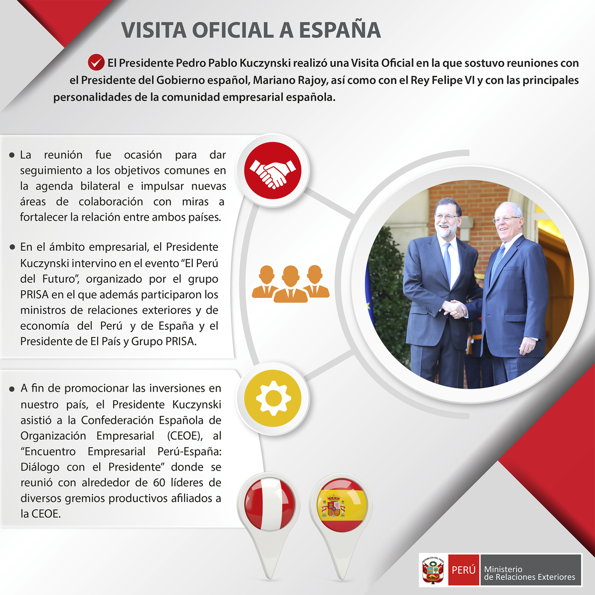 Con motivo de la #VisitaOficialEspaña del Presidente @ppkamigo, conoce las principales actividades realizadas en ese país 🇵🇪🇪🇸pic.twitter.com/LPkx8B0pbd
