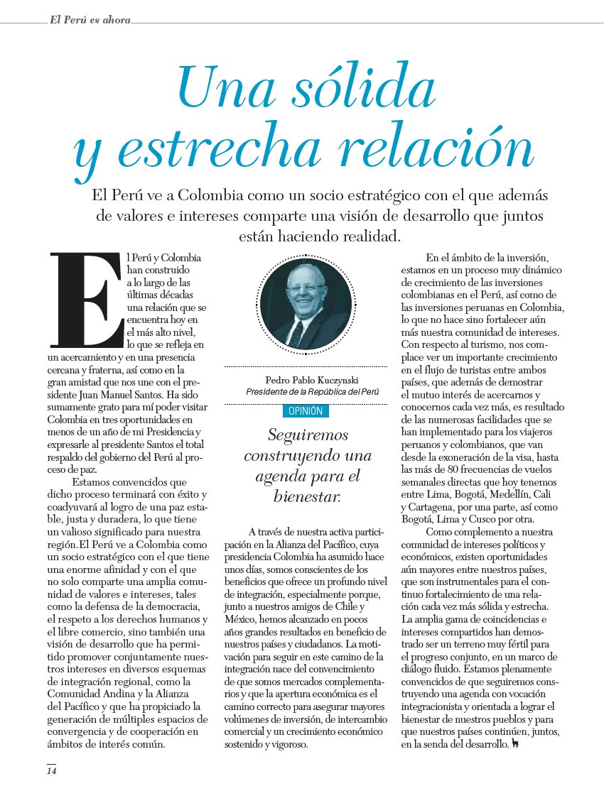 📄 Artículo de opinión del Presidente @ppkamigo: "Una sólida y estrecha relación" entre 🇵🇪 y 🇨🇴 http://bit.ly/2vDF2v3  vía @RevistaSemanapic.twitter.com/xIMBvOsQot