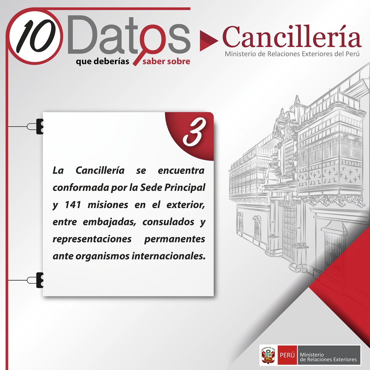 Ministerio de Relaciones Exteriores. Formulamos, ejecutamos y evaluamos la política exterior del país. Facebook: http://facebook.com/CancilleriaPeru