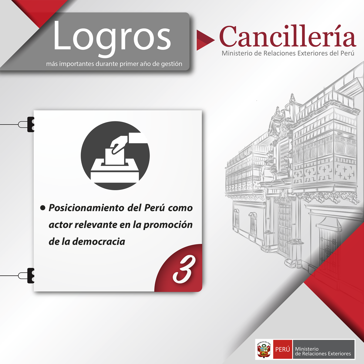 #LogrosCancillería | Posicionamiento del #Perú como actor relevante en la promoción de la democracia.pic.twitter.com/EmndwJBfMM
