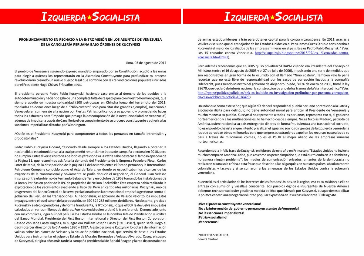 2. IzquierdaSocialistaP‏ @IzqSocialistaPe 8 Aug 2017