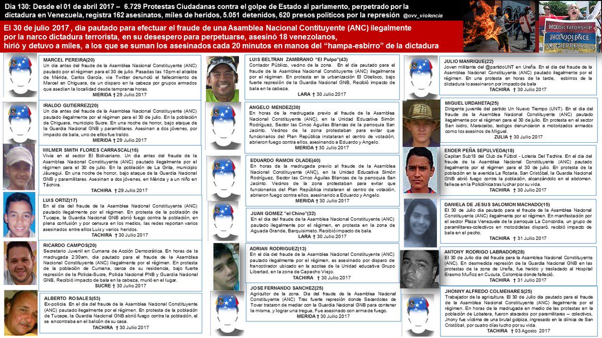 Son más de 130 asesinados #Venezuela 3000 heridos,daños propiedad,500 secuestrados políticos, y como si fuera poco Asamblea ilegítima maduro