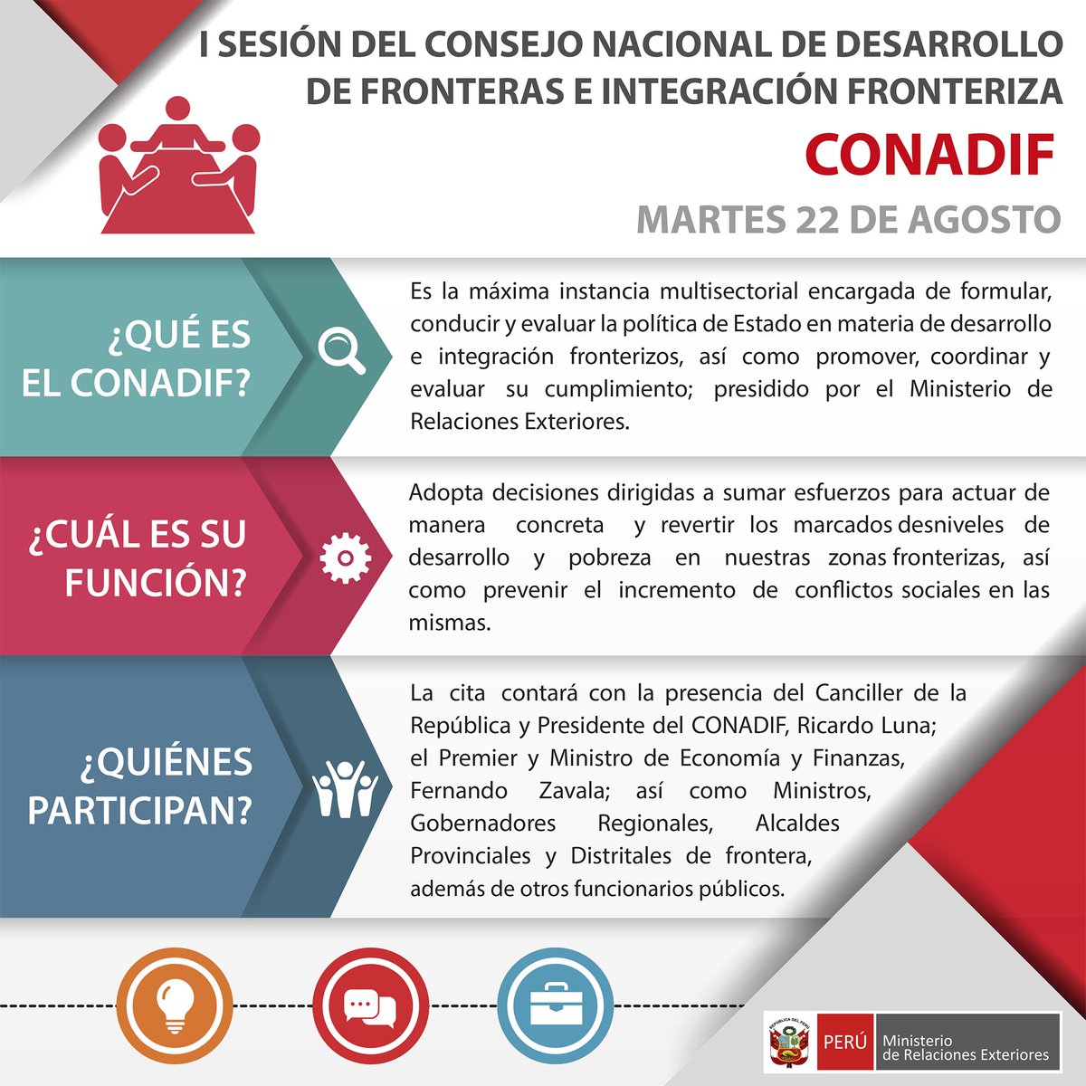 #EnBreve se inaugurará la I Sesión Ordinaria del CONADIF presidida por @CancilleriaPeru. Revisa esta infografía para conocer más detalles 🔽pic.twitter.com/M4Rhs9w2hI