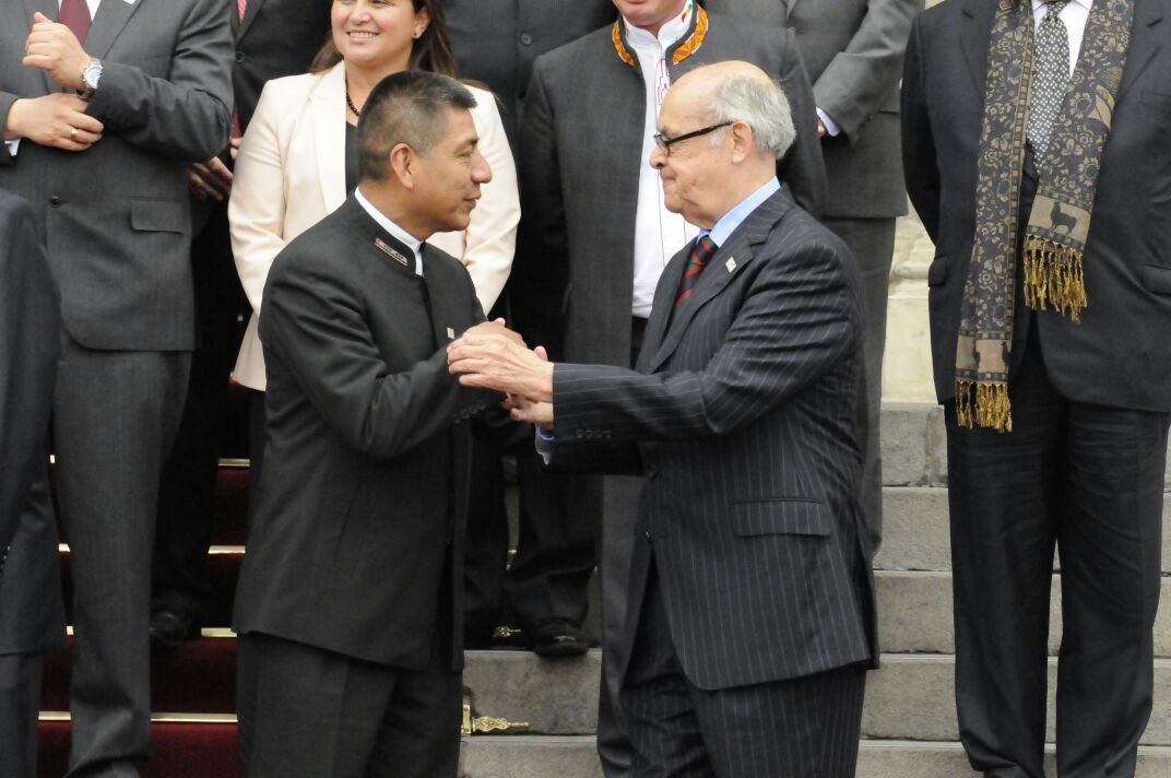 | Saludo entre el Canciller Ricardo Luna y su homólogo del @MRE_Bolivia, Fernando Huanacuni. #BinacionalPerúBoliviapic.twitter.com/6VVtbBA3wX