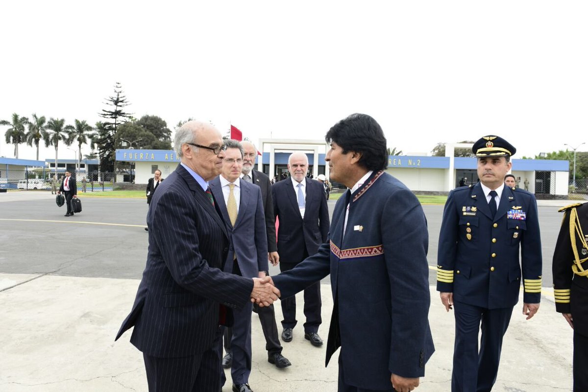 Canciller Luna despidió a @evoespueblo quien partió a su país tras encabezar, junto a @ppkamigo, el III Gabinete #BinacionalPerúBoliviapic.twitter.com/SixoRy5xVF