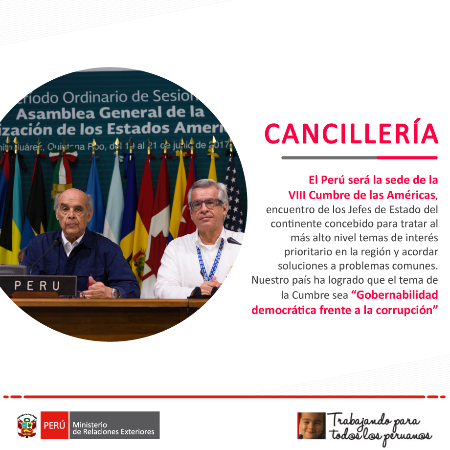 #VotoDeConfianza Perú será sede de VIII Cumbre de las Américas cuyo tema es Gobernabilidad democrática frente a corrupción. #VIIICumbrePerúpic.twitter.com/KWE2haTh0N