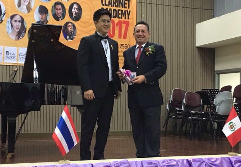 En #Tailandia | Músico peruano Marco Antonio Mazzini brindó taller de clarinete a estudiantes tailandeses y chinos http://bit.ly/2i8eZdT pic.twitter.com/zXHSjrcKtJ