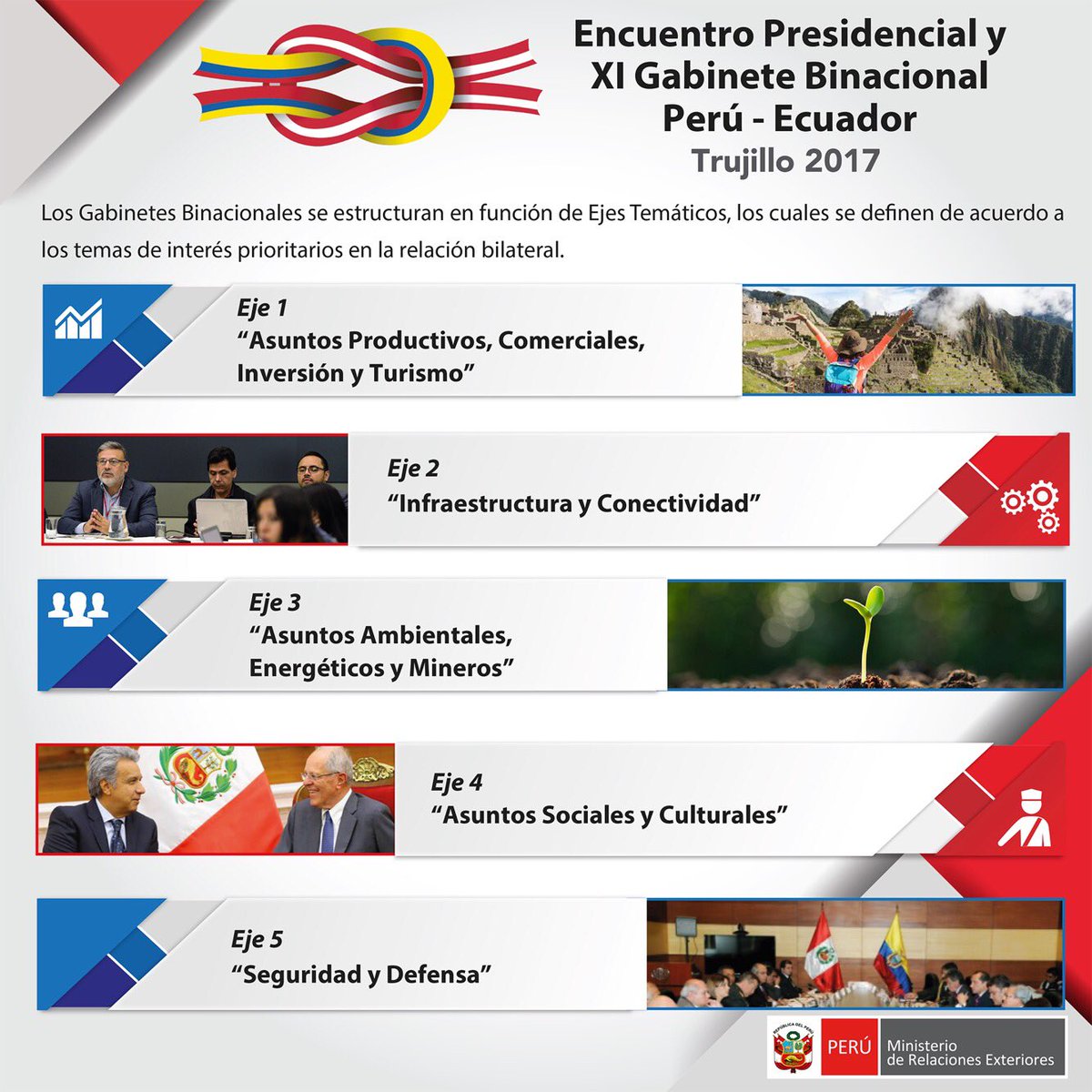 Mandatarios @ppkamigo y @Lenin presidirán #BinacionalPerúEcuador para abordar temas referidos a agenda común organizada en 5 ejes temáticospic.twitter.com/5aUi6SlHtx