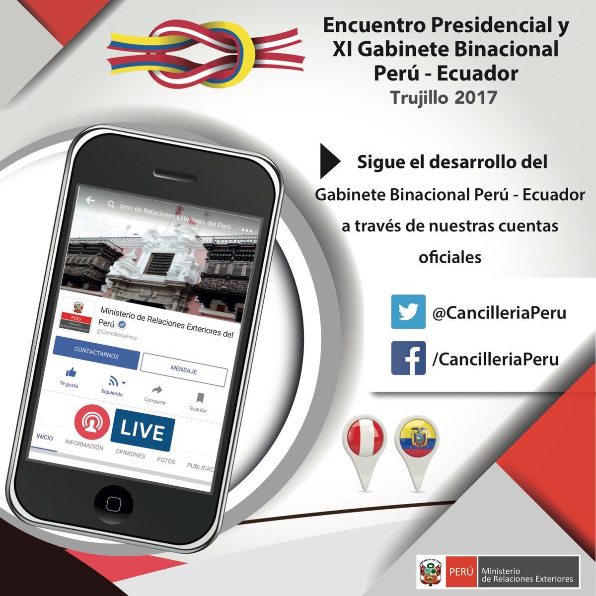Sigue el desarrollo del Encuentro Presidencial y XI Gabinete #BinacionalPerúEcuador a través de nuestras redes sociales.pic.twitter.com/glO5rDdqud